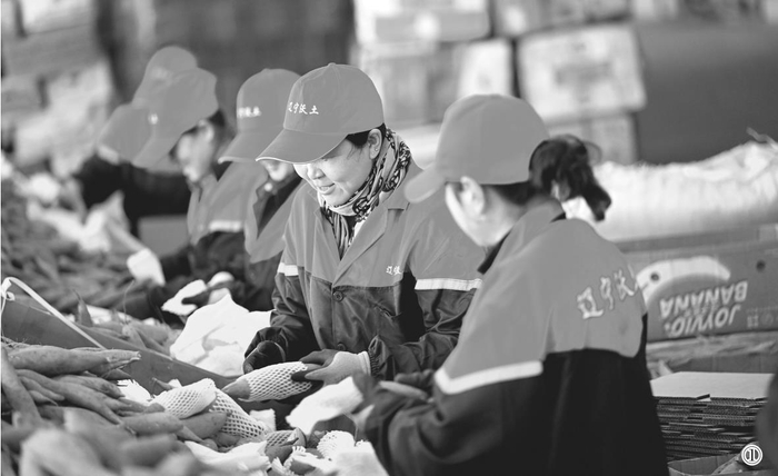 “咱彰武县位于北纬42°,早晚温差大,日晒时间充足,使得彰武地瓜外形好、甜度高、口感软糯香甜,一烤就流蜜!”12月2日,在位于阜新市彰武县前福兴地镇六合堂村的辽宁沃土农产品贸易有限公司,流水线上,几十名女工正手工分拣包装地瓜,忙得热火朝天,公司负责市场销售的李帅说,“最近公司的‘烟薯25’‘西瓜红’‘哈密’‘一点红’和最具地域特色的‘明水一号’热销,除了省内直接送货的大型连锁商超外,在抖音、快手、拼多多和公司微信公众号等平台的销售也异常火爆,供不应求。”