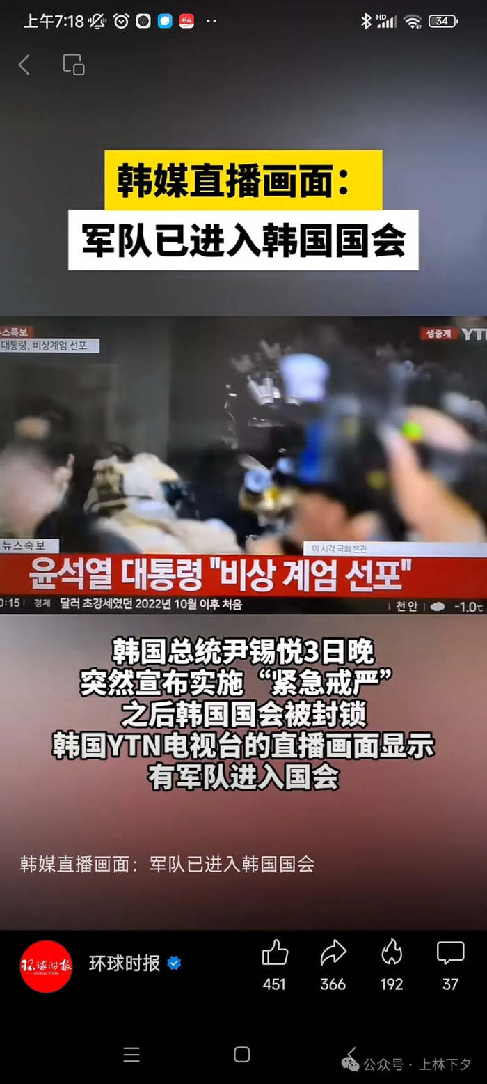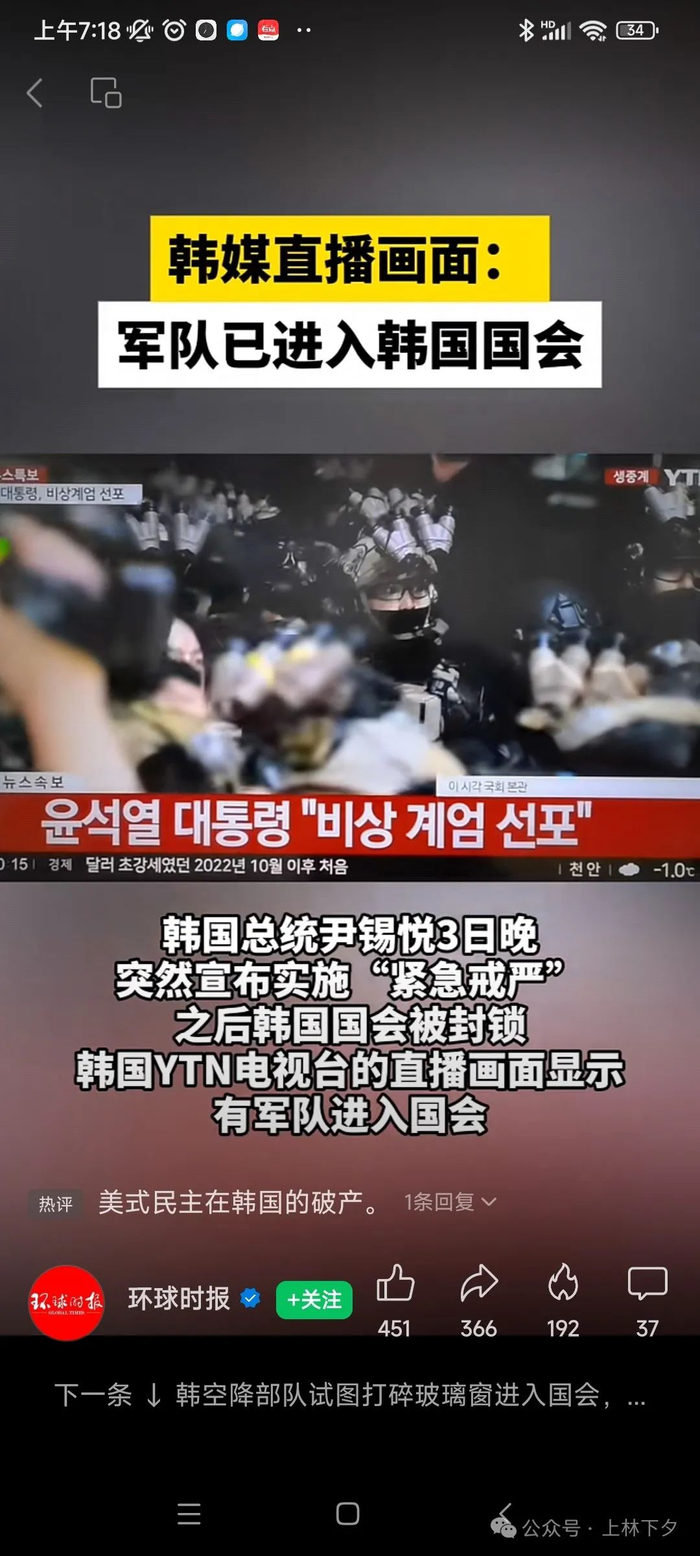 12月3日夜间23点,韩国装甲部队在短短2个小时就开进首尔,封锁主要交通路口,韩国军方的装甲车包围了韩国国会大厦,实际上韩国总统45年后再次发动了军事政变。可惜他选错了时间,即将下台的拜登刚刚违诺赦免了自己的儿子,又怎么会为了一个外人再背上反民主的罪名。驻韩美军的价值观最终成为了压倒韩国政变军队价值观的最后一根稻草。韩国国会大厦内聚集了190多名在野党反对议员,在尹锡悦发布戒严令后即启动了对韩国总统的罢免程序,最终190名议员全部投了赞成票,全票通过罢免尹锡悦提案,并裁定尹锡悦宣布的戒严法令违法。戒严士兵当时冲进正在投票的国会中心,由于国会工作人员、记者、韩国政府辅政官等团体组成人墙迟滞了士兵的速度,使得投票最终完成。据传士兵接到了军事命令,要求他们不惜代价必须攻进国会大厅,然后韩军就以暴力手段破开大门,特种作战部队通过索降破窗的方式进入大厅,准备对190反对党投票议员实施抓捕,罪名则是通敌北朝鲜的叛国罪名。但在韩国媒体全球媒体架好摄像机全球直播的镜头面前,对峙一段时间后,韩国士兵拒绝执行上级的命令,看着韩国议会完成了投票。中下层和部分高层军方人士看大势已去,更是直接抛弃韩国国防部高官组成的戒严司令部,自作主张撤出了国会大厦,选择遵从韩国法律程序。随后戒严司令部也早于总统宣布撤回戒严兵力。韩国总统尹锡悦试图发动一场针对反对派的军事政变已失败。当地时间4日凌晨4时27分左右,韩国总统尹锡悦在位于首尔龙山的总统办公室通过现场直播宣布,决定接受国会的要求,解除戒严令。韩国联合参谋本部表示,自4日4时22分起,因紧急戒严令而投入的兵力全部撤回。戒严司令部的决定早于韩国总统5分钟。资料:1950年在朝鲜大军占领汉城,并攻占韩国中部的大田市前一周,李承晚总统于7月14日紧急致函“联合国军”总司令麦克阿瑟上将,提出将韩军的作战指挥权转让美国。美国驻韩大使向韩国转达书函表示接受。两份书函就成为韩国向美国转让韩军作战指挥权的美韩《大田协定》,从此正式开启了美军指挥韩国军队的序幕。1953年8月8日韩美两国又签署了《美韩共同防御条约》,让美国在韩国境内获得了无限期的驻军权力。1954年11月14日,韩美签署的《对韩军事与经济援助协议议事录》,其中明确规定“联合国军司令部在担当韩国防御责任期间,大韩民国武装力量被置于联合国军司令部的作战控制权之下”。1978年11月7日,韩美联合司令部正式成立,由驻韩美军司令兼“联合国军”司令部司令同时兼任韩美联合司令部司令,取代“联合国军”的职责,但“联合国军”司令部并没有被取消,驻韩美军司令掌管朝鲜半岛上的美韩两军的特权继续存在,一名韩军四星上将担任韩美联合司令部副司令,给驻韩美军司令兼韩美联合司令部司令当助手。1994年12月,韩国金泳三总统任期内正式从驻韩美军手中收回了对韩军的平时作战指挥权,驻韩美军司令继续保留战时指挥权。从这一刻起,韩军的日常作战活动、部队调动和战备以及联合战术训练等业务,韩国总统就不再需要经过美韩联合司令部的允许,可独立行使军事权力。2005年9月卢武铉总统执政时期,期间在2007年2月23日,韩国国防部长金章洙和美国国防部长盖茨达成协议,双方同意在2012年4月17日将战时指挥权移交韩国,同时解散美韩联合司令部。之后美国一拖再拖,多次推迟战时指挥权的移交,甚至还给韩国设定条件,必须要检验韩国是否具有独立领导韩军作战的能力,李明博总统、朴槿惠总统两次被推迟收回战时指挥权,到了文在寅总统时期同样没有完成。至今韩国军队战时指挥权仍在美军手中。