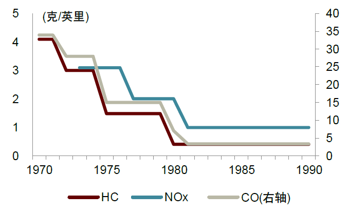 图表8:20世纪70年代起美国排放标准趋严