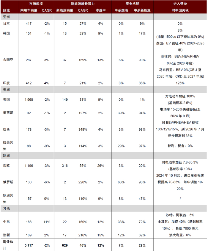注:销量、新能源渗透率、市占率采用2023年数据,销量单位为万辆,CAGR为计算2018-2023年均复合增速,更新截至2024年10月