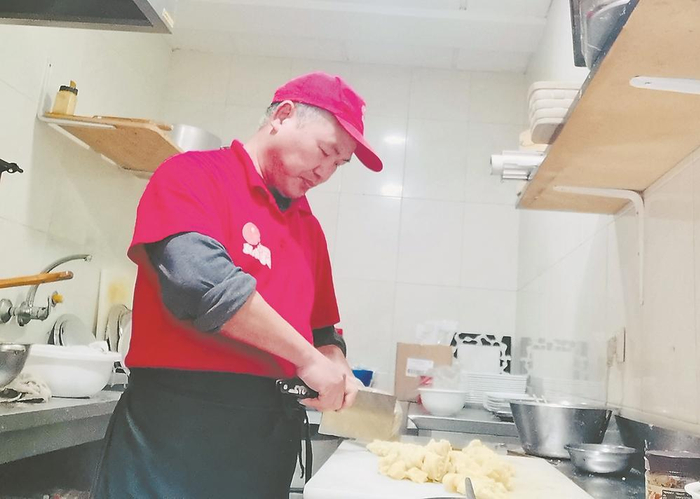 葡萄牙沙县小吃店主在厨房制作美食。