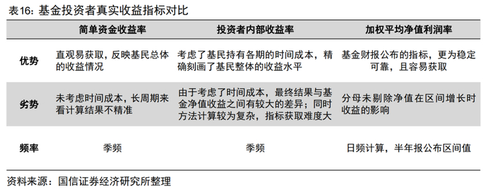总体来看,相比基金净值增长,三个指标均考虑了基民的交易行为对于基民真实收益的影响,互有优劣: