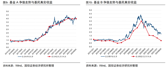 投资者能否从基金净值增长中获利:基金净值的增长与基民真实收益之间可能存在差异,我们构建基民真实收益指标衡量基民实际的投资收益,总体来看基民真实收益的增长落后于基金净值的增长。