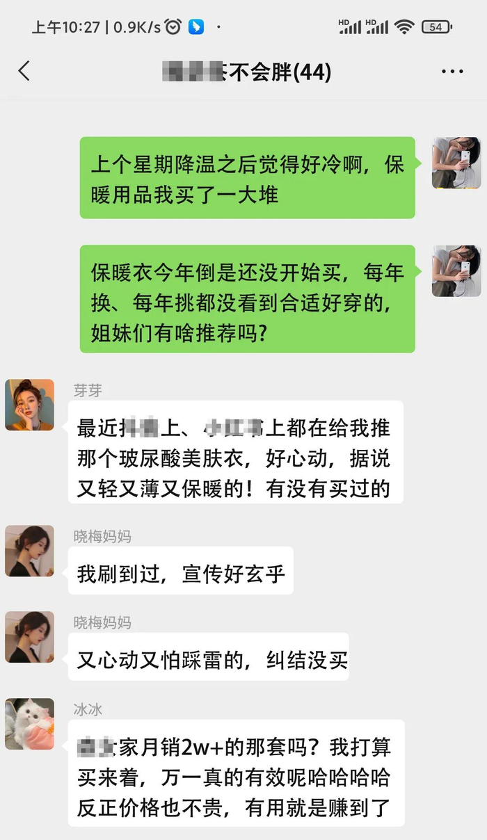 知道群里朋友提了句:“你们有没有刷到今年特别火的那款玻尿酸美肤保暖衣?”