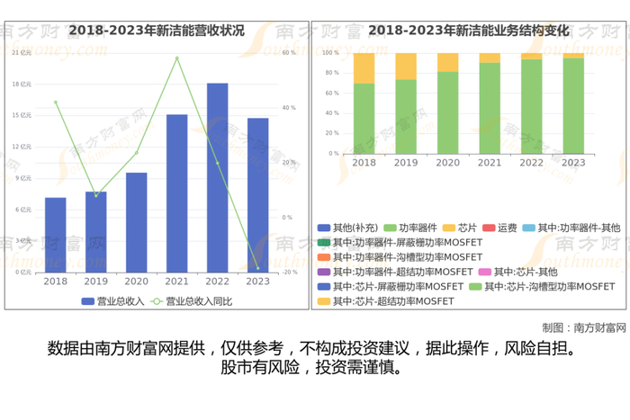 新洁能于2020年9月28日在上海证券交易所上市,公司主营业务为MOSFET、IGBT等半导体芯片和功率器件的研发设计及销售。