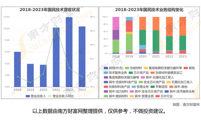 国民技术于2010年4月30日在深圳证券交易所上市,公司主营业务为主要从事自主技术、自主品牌的集成电路芯片研发设计及销售,并提供相应的系统解决方案和售后的技术支持服务;锂离子电池人造石墨负极材料研发、生产和销售,以及石墨化加工服务。