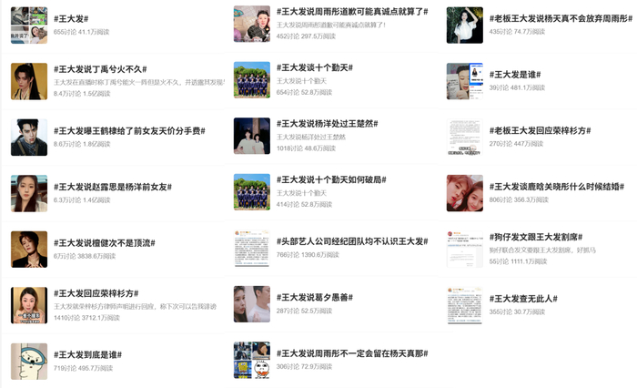 现如今,反而变成了谁更能肆无忌惮的吹牛,谁更能获取粉丝信任的一个媒介环境,信誓旦旦的王大发,就这样粉墨登场进入了整个八卦圈的核心。