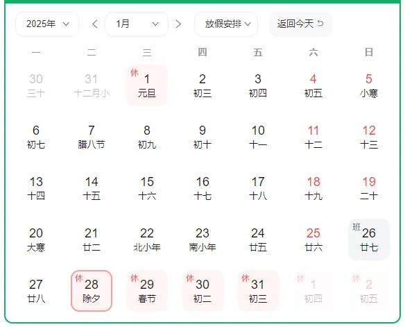 2025年1月29日将迎来农历新年蛇年,但2025年没有大年三十,大年二十九过后就是大年初一。