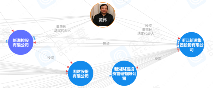 中植科网控股公司是新湖财富第一大股东,持股比例47.03%,前者又是中植融金控股公司的全资子公司。浙江新湖集团股份公司是新湖财富第二大股东,持股比例17.08%。黄伟则是浙江新湖集团股份公司的实控人,持股53.07%。