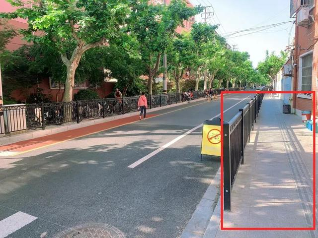 虹口区在开展人行道问题排摸过程中,发现位于吴家湾路荣振馨苑西门处两侧人行道缺失,过往市民不得不走到非机动车道上,存在安全隐患。虹口区建管委在符合机动车道宽度标准的前提下,适当压缩机动车道的宽度,增设了1米宽度的人行道,并与现状人行道顺接,改造后的人行道实现了连贯通畅。