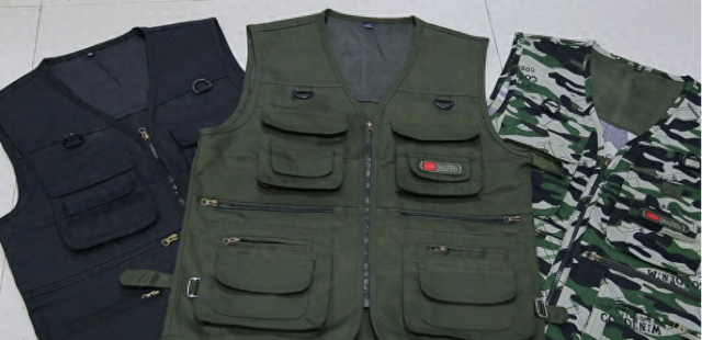 淘工厂多口袋马甲商家赵俊展示“廉航神器”的新用法。