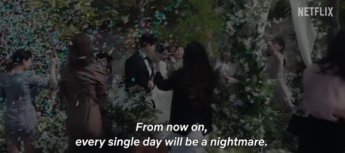 剧集开篇,有大量画面详细呈现女主角文东恩怎样陷入校园霸凌中求助无门,为后续复仇做足铺垫。霸凌者用烫发的夹板烫伤文东恩,文东恩由此落下心理阴影,一直害怕烤肉,不喜欢热的食物。被迫退学时,文东恩希望在退学理由一栏写上“校园霸凌”作为反抗,却被班主任和自己的亲生母亲联手改为“不适应”。这既表现出母亲对文东恩的无情,凸出她的孤立无援;又表现出富人能够轻易地收买穷人,体现阶级压迫;还为文东恩不择手段的复仇提供合理性,因为正常途径无法获得公平和正义。