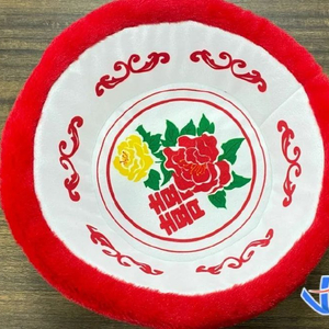▲智多娃玩具生产的毛绒红双喜脸盆 受访者供图