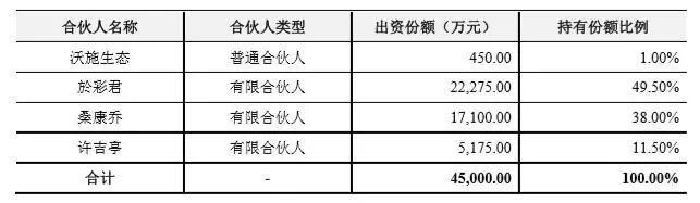 我们看到,上市公司实在是没什么钱,根本拿不出4.5亿现金。于是,上市公司仅出资450万元,其余全是找三个大佬出的:於彩君是上市公司雷迪克的实际控制人,桑康乔是上市公司誉宴集团的实际控制人,许吉亭资料较少,但能在这里出现,应该也不是等闲之辈。