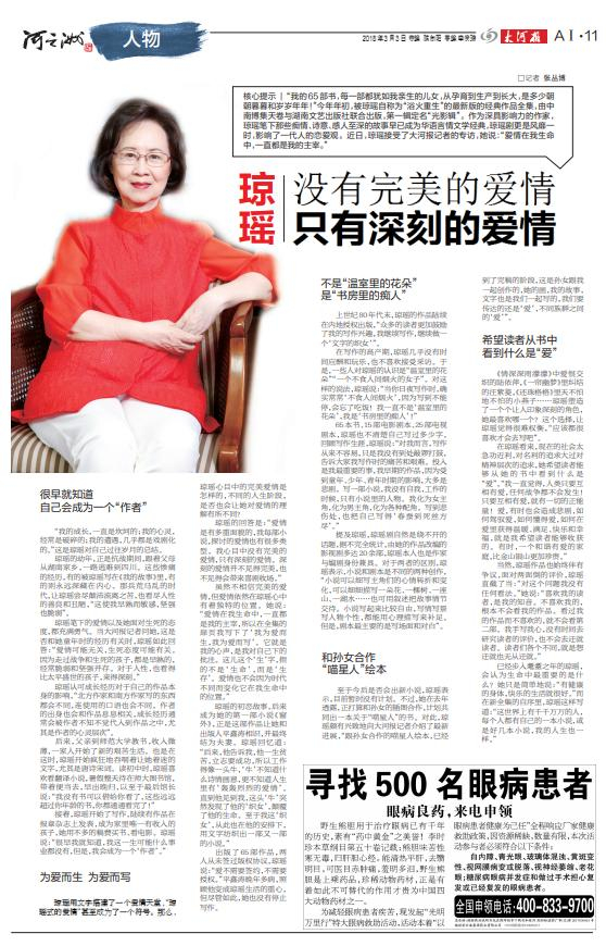 当时,琼瑶接受顶端新闻·大河报记者专访,对自己的成长历程和创作生涯进行了系统回顾,她说:“爱情在我生命中,一直都是我的主宰。”