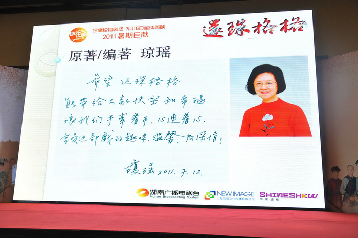2011年7月13日,北京,琼瑶发来贺信,祝贺电视剧《新还珠格格》开播。