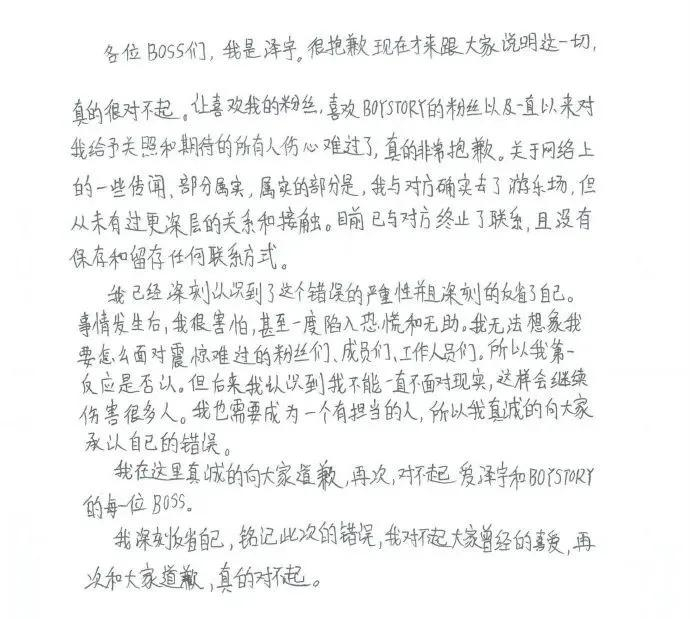 值得一提的是,此前网传消息被曝光后,BOYSTORY所属公司北京新声娱乐有限公司官方账号曾发布过一条“严正声明”称网传该司艺人于泽宇相关信息不实。
