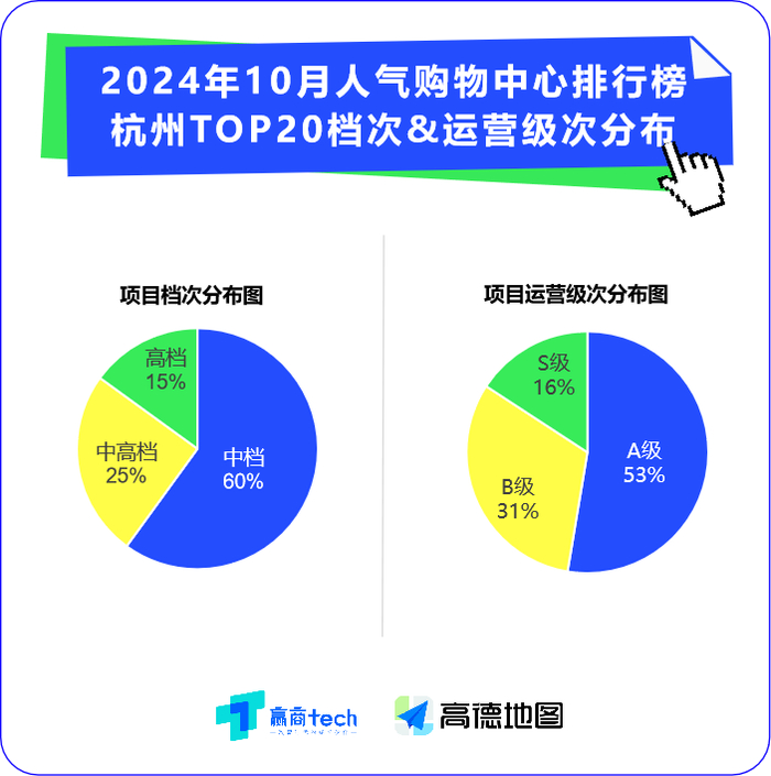 上榜项目运营级次来看,65%以上为A级及以上,运营十分成熟;6个B级项目成长潜力巨大。此外,杭州市重奢项目均上榜,侧面印证10月杭州整体消费力不俗。