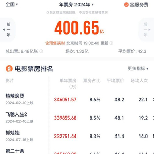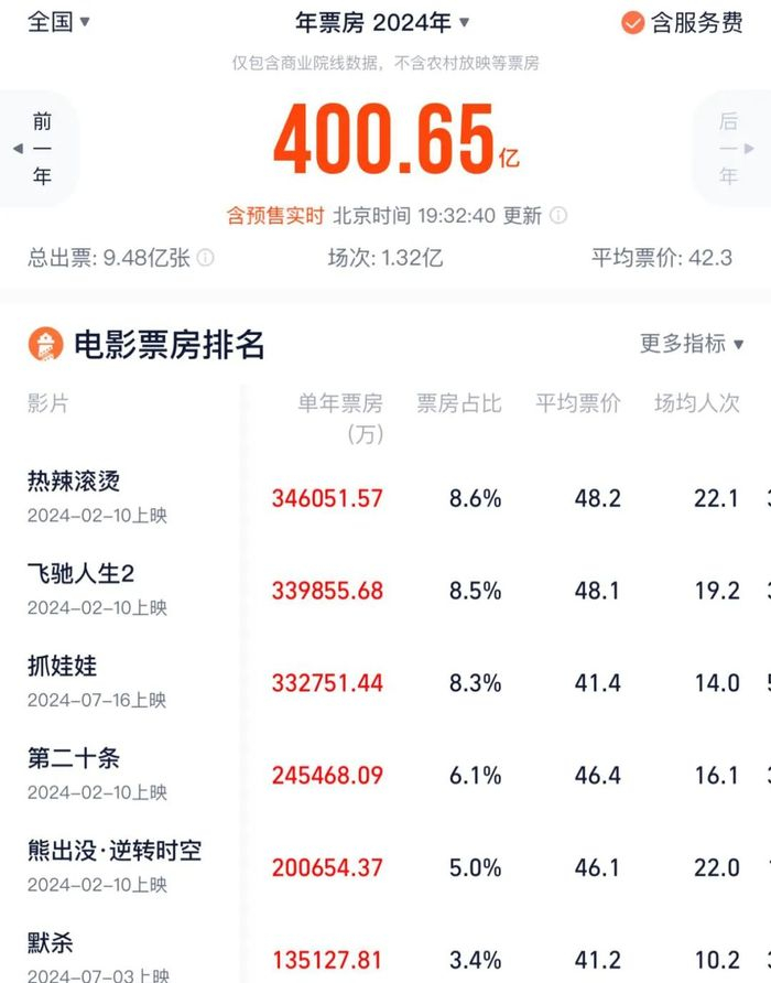 截止发稿前,2024年年度票房(含预售)刚刚超过400亿,对比2023年同期存在超100亿的追赶差距,基本回到了2016年的水准。