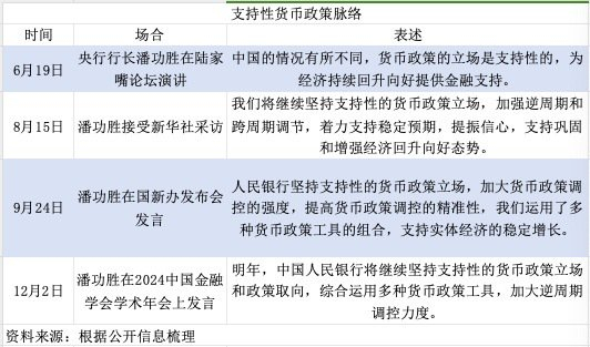 “支持性货币政策”这一提法首次出现于今年6月。当时,潘功胜在陆家嘴论坛上表示,今年以来,全球通胀高位降温,但仍有较强的粘性。欧央行等一些央行已经开始降息,一些央行还在观察,预期今年晚些时候可能也会降息,但总体上还保持着高利率、限制性的货币政策立场。中国的情况有所不同,货币政策的立场是支持性的,为经济持续回升向好提供金融支持。