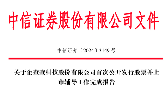 瑞财经 严明会 12月4日,企查查科技股份有限公司(以下简称:企查查)完成IPO辅导验收,辅导机构中信证券。