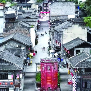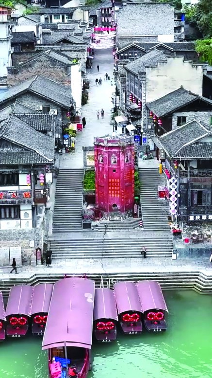 “全城群山环抱,山中有城,城中有山,青石板街依山就势,纵横交错……”在沈从文先生的《边城》里,翠翠和爷爷的故事就发生在湖南湘西茶峒镇,它位于湘黔渝三省市交接处,故此,茶峒古镇有“一脚跨三省”“三省闻鸡鸣”之称。