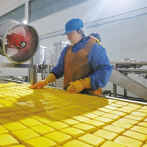 12月2日,在白水县泉豆乡实业有限公司生产车间,工人在摆放豆腐。 记者 梁少飞摄