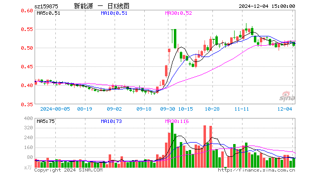 12月4日新能源ETF(159875)份额增加750.00万份,最新份额20.42亿份,最新规模10.30亿元