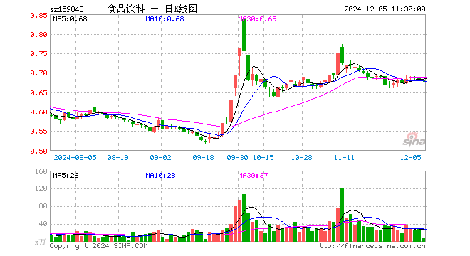 12月5日,截止午间收盘,食品饮料ETF(159843)跌0.44%,报0.680元,成交额629.21万元。食品饮料ETF(159843)重仓股方面,五粮液截止午盘跌0.48%,贵州茅台跌0.39%,伊利股份跌0.79%,泸州老窖跌0.58%,山西汾酒跌0.47%,海天味业跌0.17%,洋河股份跌0.53%,今世缘涨1.23%,东鹏饮料跌0.34%,双汇发展跌0.47%。