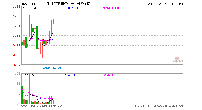 12月5日,截止午间收盘,红利ETF国企(530880)涨0.10%,报1.013元,成交额1548.49万元。红利ETF国企(530880)重仓股方面,中国神华截止午盘跌0.07%,陕西煤业涨0.04%,唐山港跌1.10%,大秦铁路跌0.72%,交通银行跌0.27%,渝农商行涨0.70%,洪城环境涨0.54%,山东高速涨0.43%,江苏金租跌1.16%,农业银行涨0.00%。