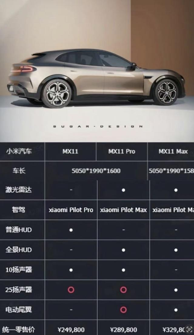 小米 SUV 配置表曝光,对标Model Y,预计起售价24.98万