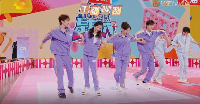 团队共舞时,陈都灵更是状况不断。牵手环节,别人迅速找到搭档,十指紧扣;她却眼神迷茫,在人群中左顾右盼,手慌乱地摸索,好不容易握住队友指尖,还没来得及松口气,音乐节奏一变,众人松手换位,她瞬间懵在原地,反应慢半拍,只能尴尬地跟着人群挪动脚步,脸上写满不知所措。虽说舞蹈功底欠佳,但这憨态可掬、努力跟上节奏的模样,反倒成了全场最大笑点,观众笑得前仰后合,弹幕里满是 “被陈都灵可爱到”“这舞蹈太上头” 的留言。