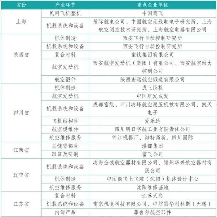 在上海之外,四川、陕西、江西、辽宁、黑龙江、湖南等众多省份都参与其中,航空产业实力不容小觑。