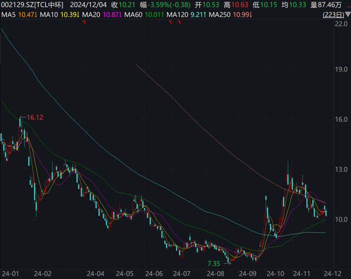 受业绩下滑和财务指标不佳影响,TCL中环年内最低股价已下探至7.35元/股(不复权,下同),创下自2021年以来新低。截至12月4日收盘,该公司股价报10.21元/股,年内已下跌32.56%,总市值为413亿元。