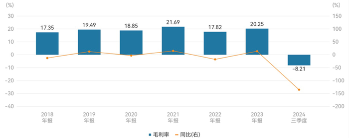 2018年至2023年及2024年前三季度TCL中环毛利率情况