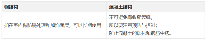 简而言之,钢结构的耐久性主要依赖于外部保护措施的设计,而混凝土结构的耐久性则取决于混凝土本身的设计。