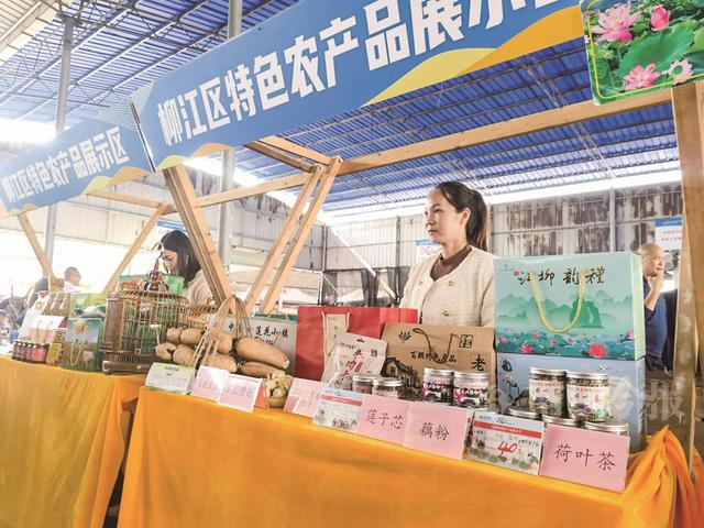 图为12月3日,成团早市“打边炉”区域旁新设置了“柳江特色农产品展示区”,游客可“一站式”采购柳江好物。 今报记者袁巧玲 摄