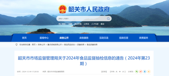 广东省韶关市市场监督管理局关于2024年食品监督抽检信息的通告(2024年第23期)