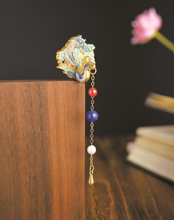 和文物的繁复工艺类比,凤冠冰箱贴在文创类别中也属精工细作。它在设计上延续了九龙九凤冠的华丽风格。设计师通过3D打印技术精确还原了凤冠的形态,同时采用木质和金属两种材料,呈现出质感上的多样化。每一粒串珠,都由工人手工组装完成,可谓“粒粒皆辛苦”。而凤冠中间椭圆形红色宝石的镶嵌,体现了对自然形态的尊重和审美偏好。