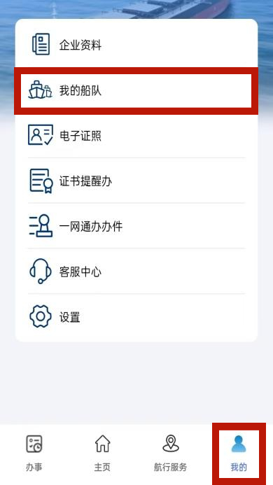 2.企业法人/经办人可将系统检测其名下的船舶维护至“我的船队”,也可通过搜索船舶将其添加维护至公司下的船队。