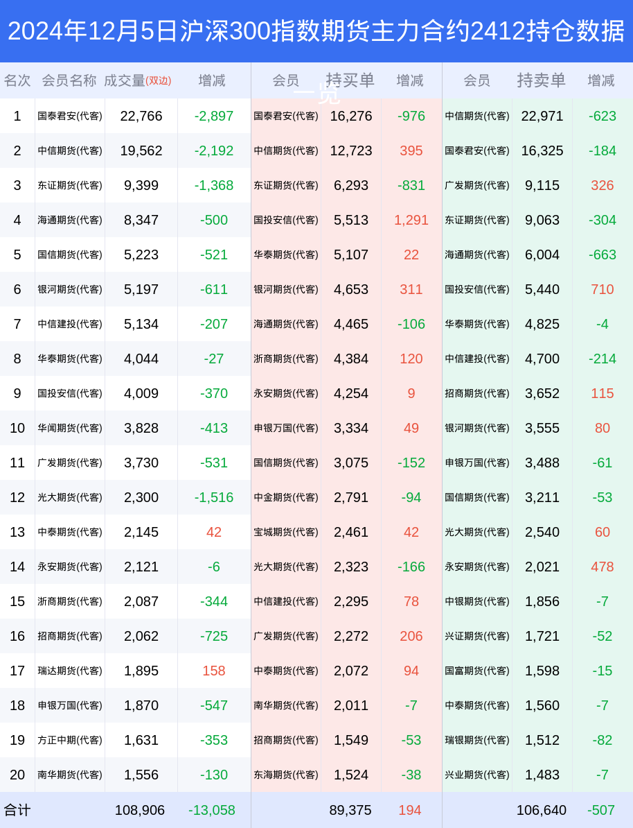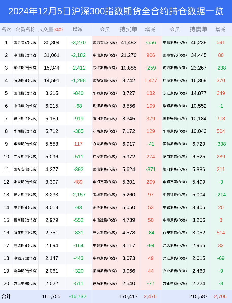 5日沪深300指数期货下跌0.08%,最新持仓变化
