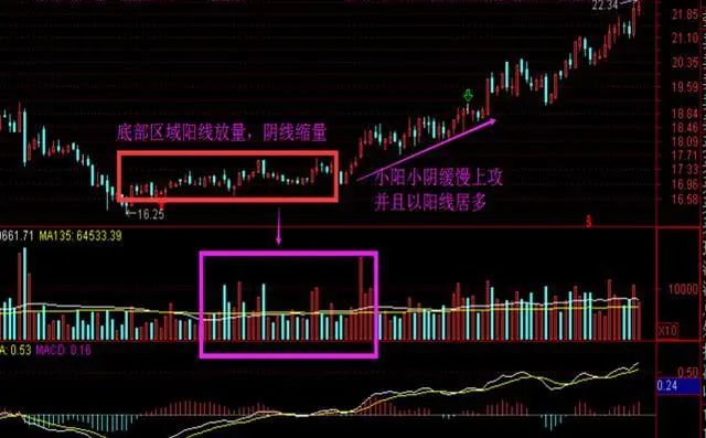 1、成交量形态要同股价形态结合看,一般股价在底部出现堆量之后,股价会随量上升。