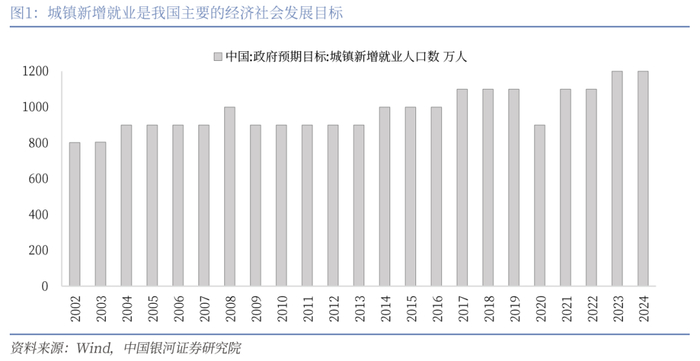 城镇新增就业人数,是指在一定时间段内(例如1年),城镇地区新实现就业的人数,城镇新增就业是我国主要的经济社会发展目标之一,是跟踪劳动力市场情况和落实国家劳动就业政策的重要指标。每年两会期间公布的政府工作报告中,“城镇新增就业”都是一个重要的政府预期目标,如2024年目标为“城镇新增就业1200万人以上”。