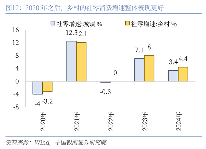 其二,疫情之后农村经济表现更加活跃,城镇就业的增加不能完整地反应GDP的增长。由于过去城镇化一直在快速推进,且农村经济增长相对稳定,我们一直着眼于城镇就业增长和经济增长的相关性。但疫情之后,农村经济相较城镇而言表现更有韧性,为GDP增长贡献了更多力量,也可能使得GDP与城镇就业增长的关系发生了一定变化。
