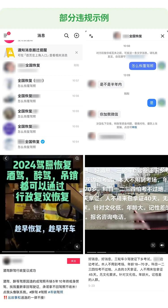 1. 诈骗分子伪装成法律咨询公司,在网络上宣称可通过行政复议帮助因违法(如酒驾、醉驾)被吊销驾驶证的人恢复驾驶资格。他们声称“符合条件的包恢复”“先恢复再收钱”。