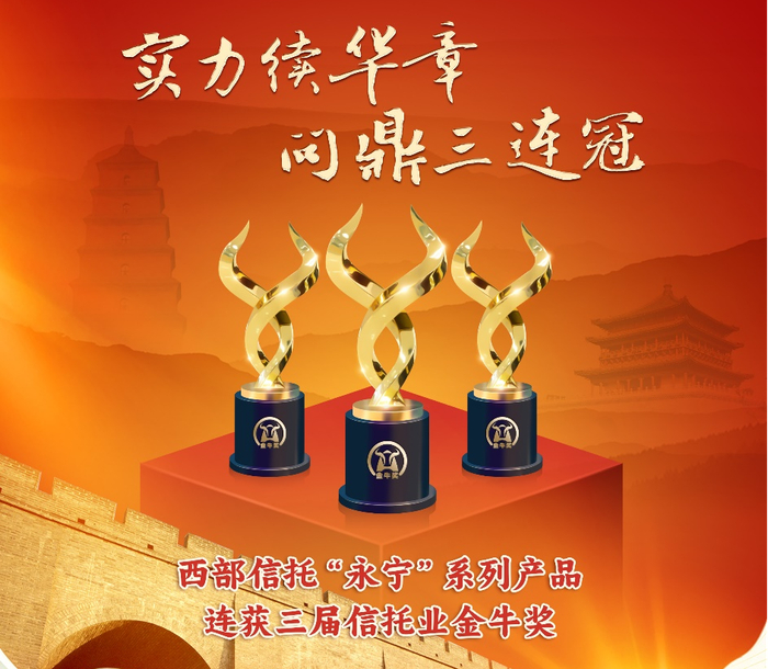 2024年9月由中国证券报主办的第三届“信托业金牛奖”评选中,西部信托凭借永宁1号产品斩获了“三年期固定收益类产品金牛奖”,实现了蝉联三届“金牛奖”的历史征程。这一业内重磅奖项的蝉联,体现了西部信托标品投资体系的日臻成熟,投研团队实力得到了业内权威机构与市场投资者的高度认可,产品的品牌形象不断提升。