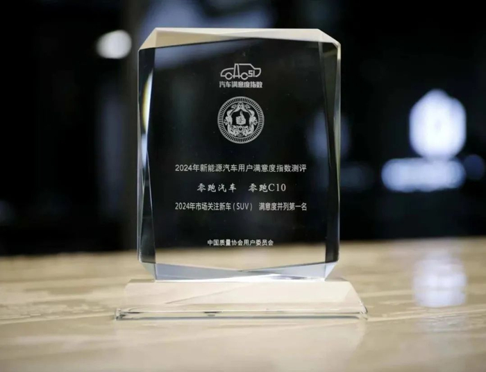 零跑C10获中国质量协会2024年市场关注新车(SUV)满意度第一