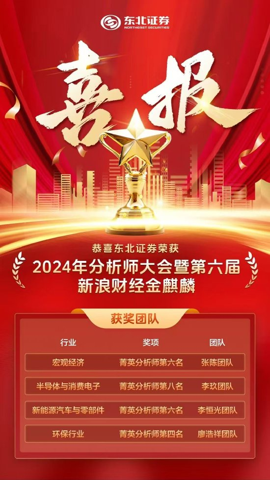 东北证券发布“金麒麟最佳分析师”喜报:荣获4项大奖