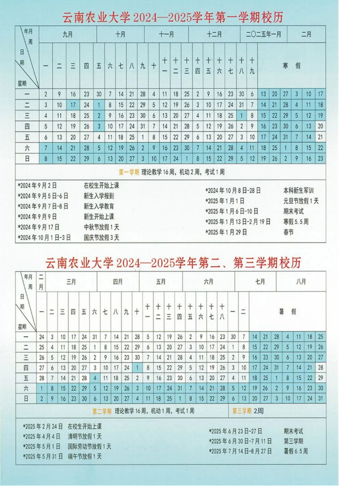第一学期放假时间:不迟于2025年1月26日。(教学时间为22周,含复习、考试时间)