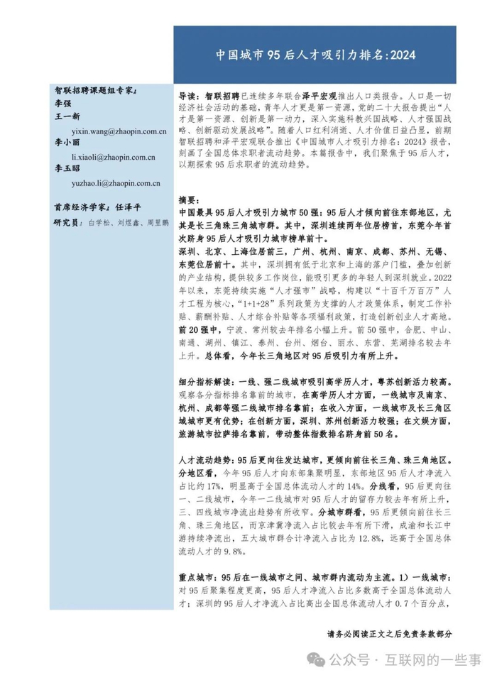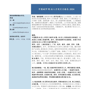 报告 | 智联招聘:2024中国城市95后人才吸引力排名(附下载)